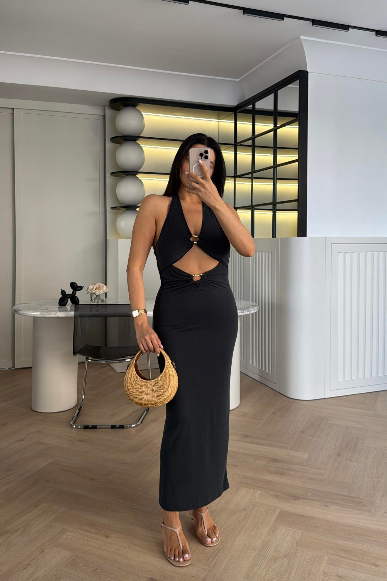 ANTRASİT MODAL KUMAŞ DEKOLTE ELBİSE