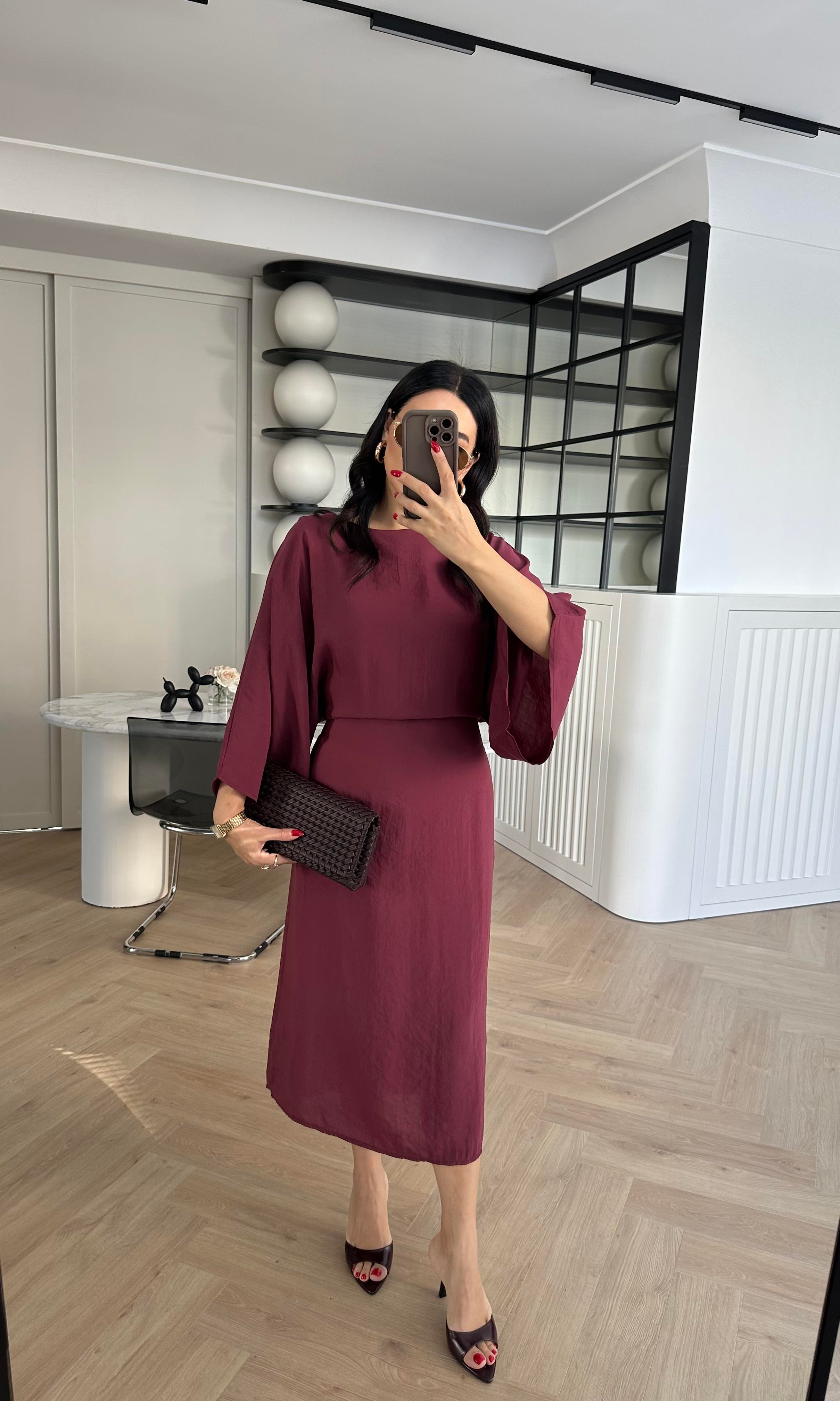 Bordo Tensel Kumaş Massimo Etiketli Elbise