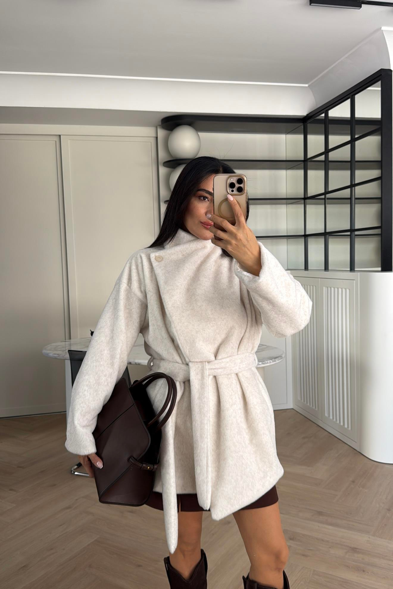 EKRU ASTARLI DİK YAKA PELUŞ CEKET
