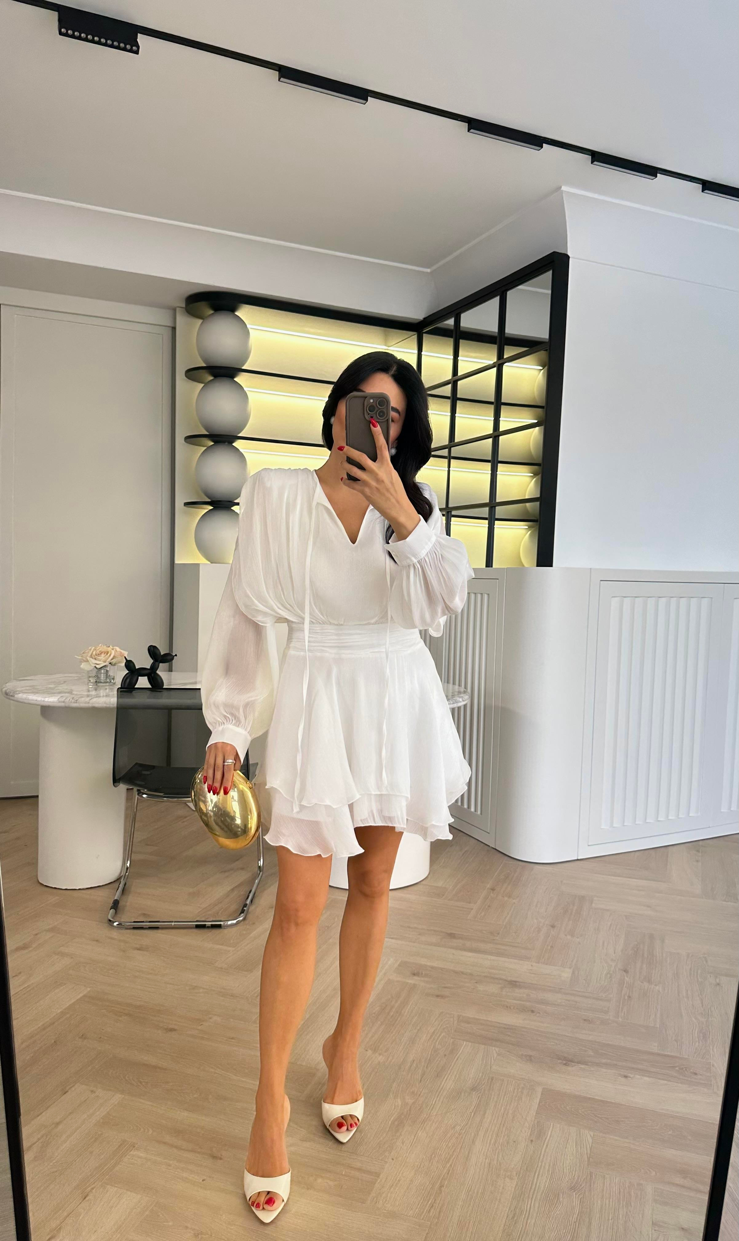 Ekru Özel Kumaş Tasarım Astarlı Vatkalı Elbise