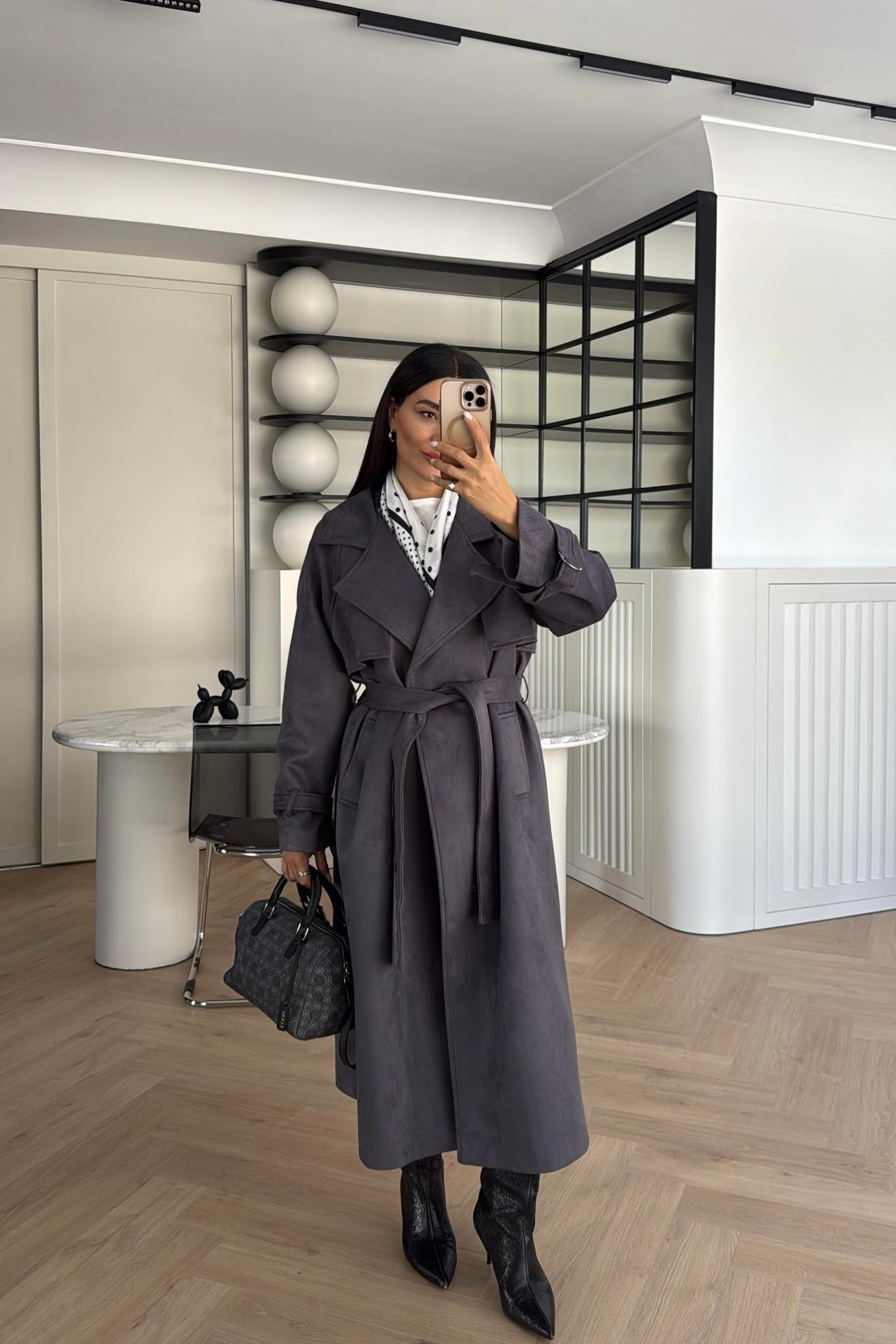 GRİ KUŞAKLI SÜET TRENÇKOT