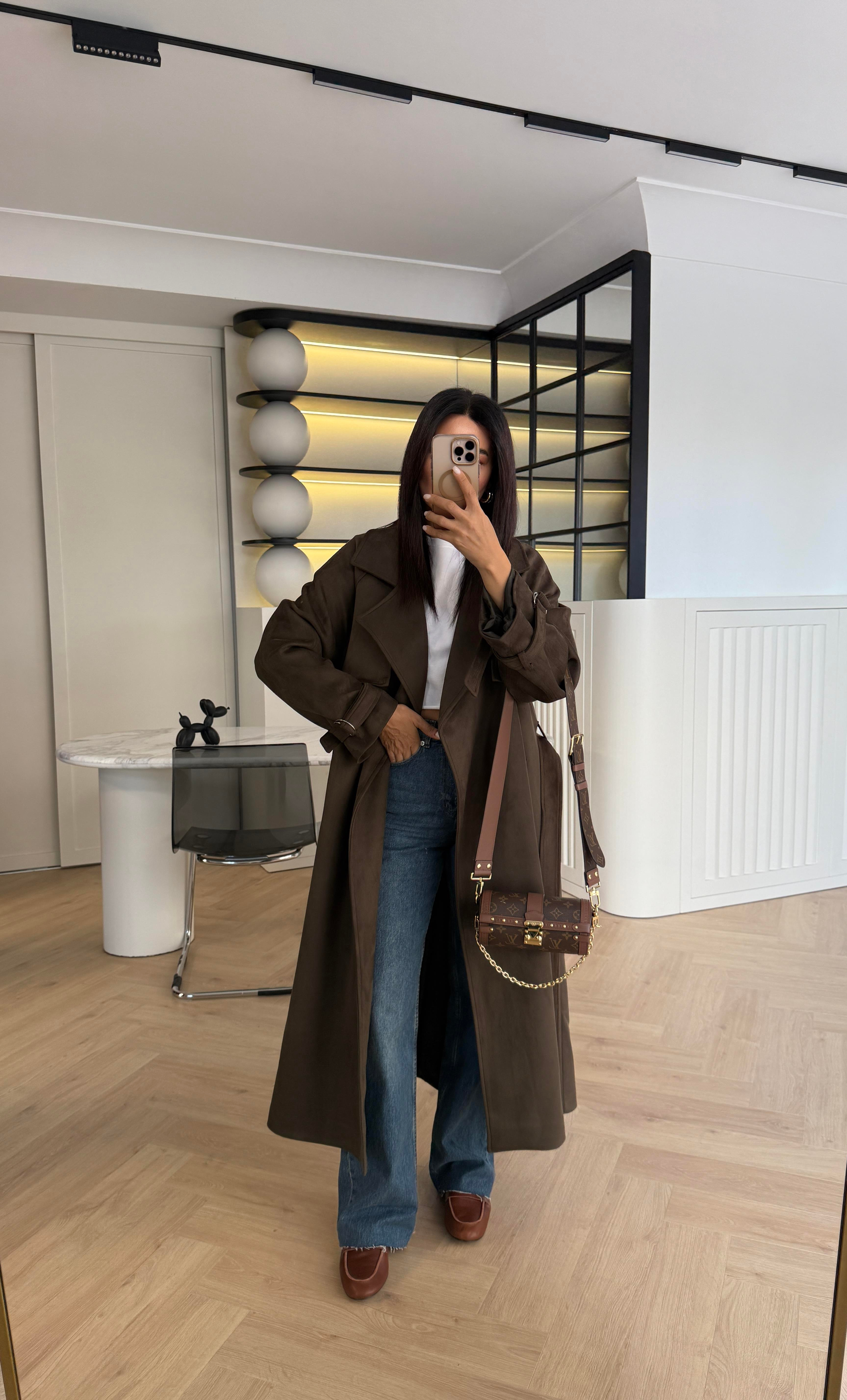 HAKİ KUŞAKLI SÜET TRENÇKOT