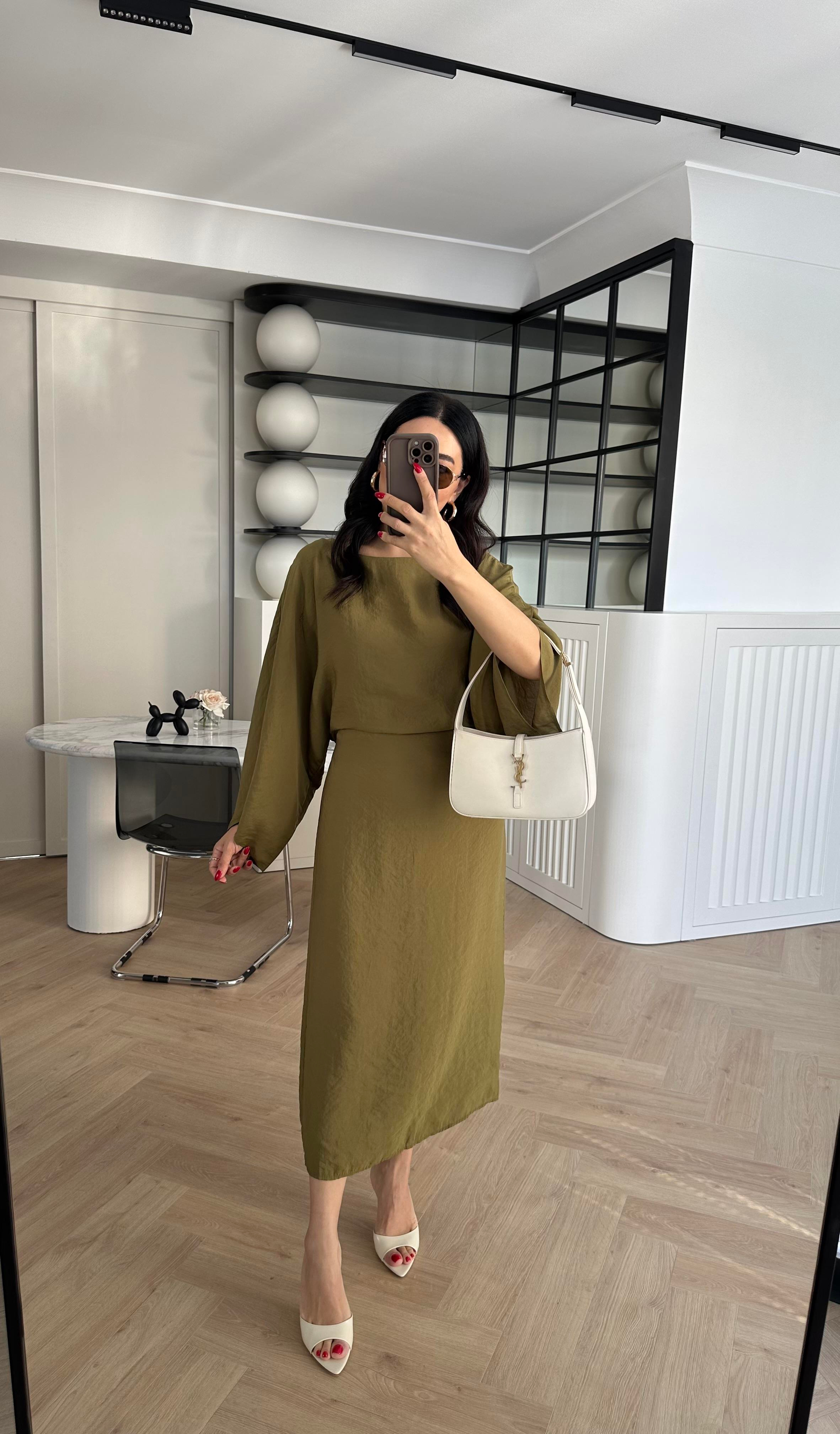 Haki Tensel Kumaş Massimo Etiketli Elbise