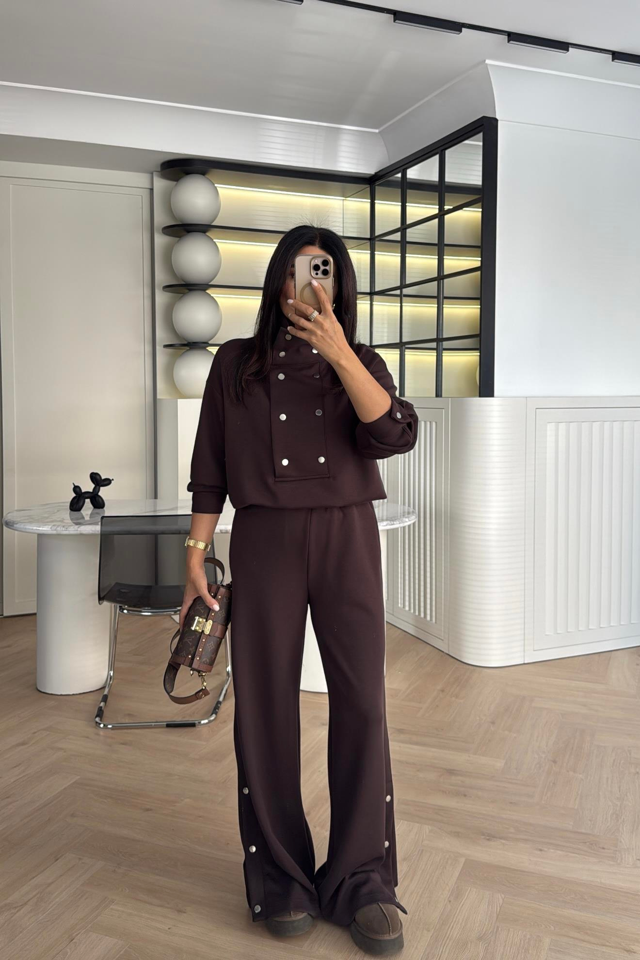 KAHVE YAKA DETAYLI MODAL KUMAŞ TAKIM