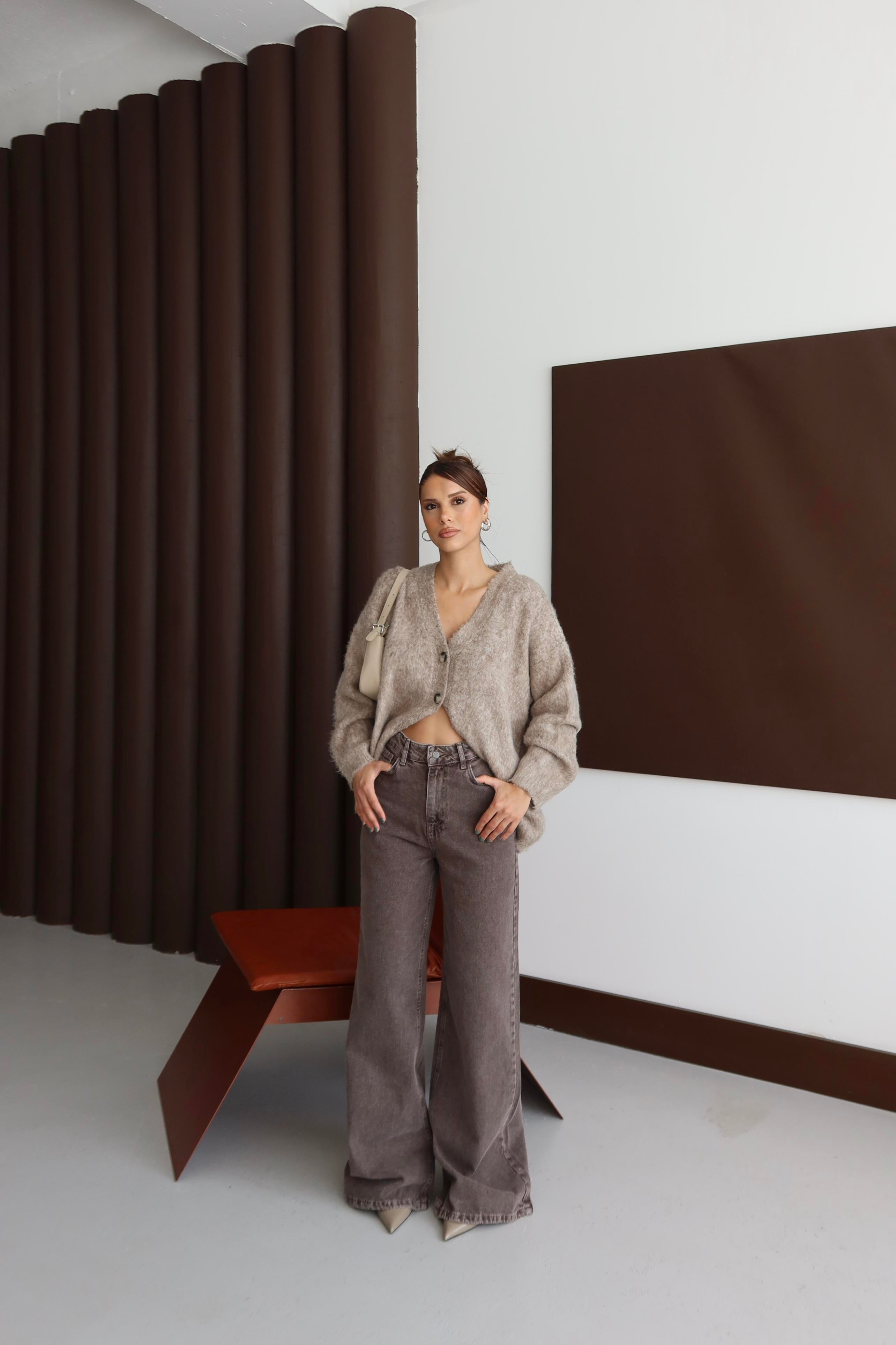 KAHVE YÜKSEK BEL DENİM PANTOLON