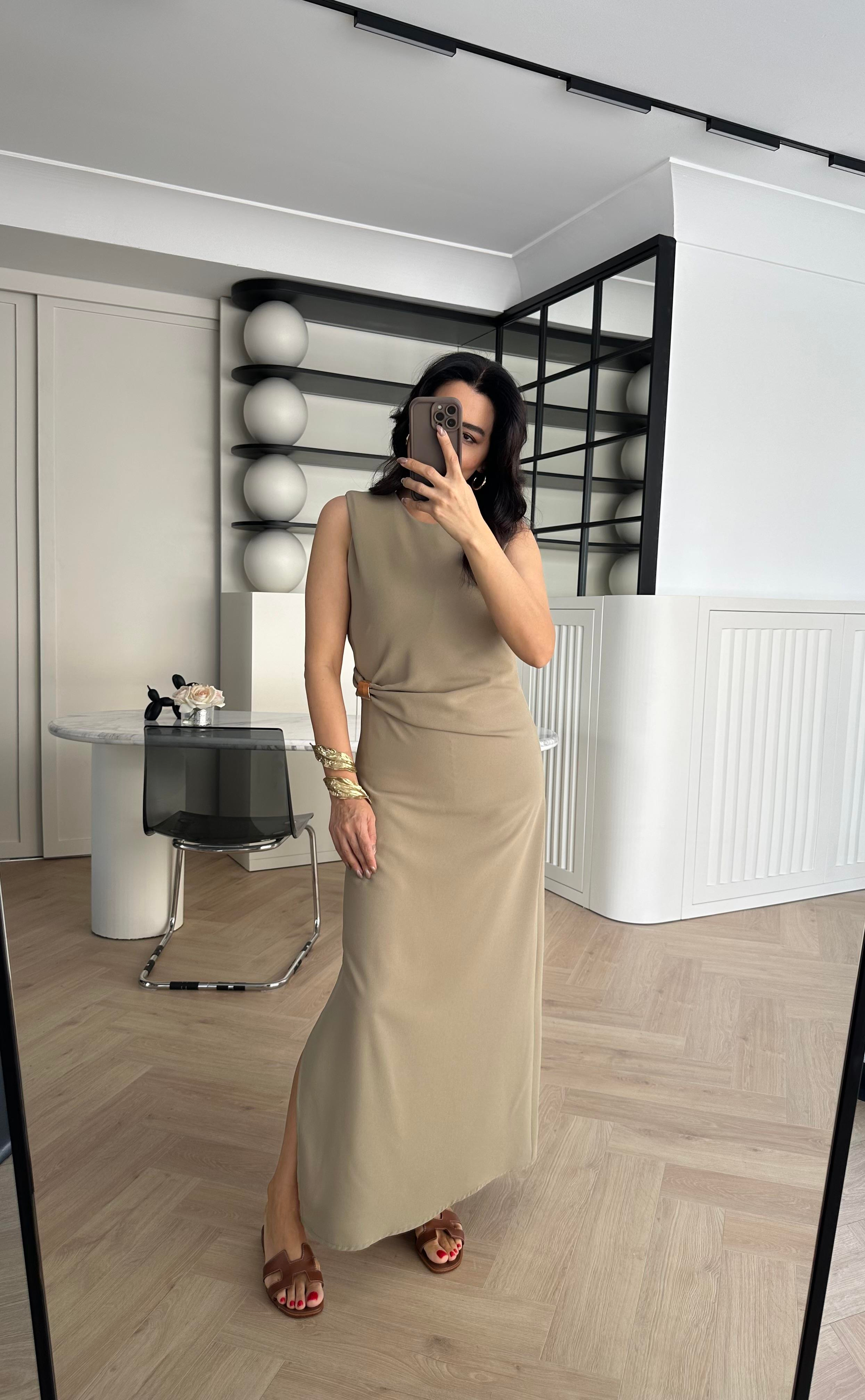 Koyu Vizon Zr Model Vatkalı Kolsuz Elbise