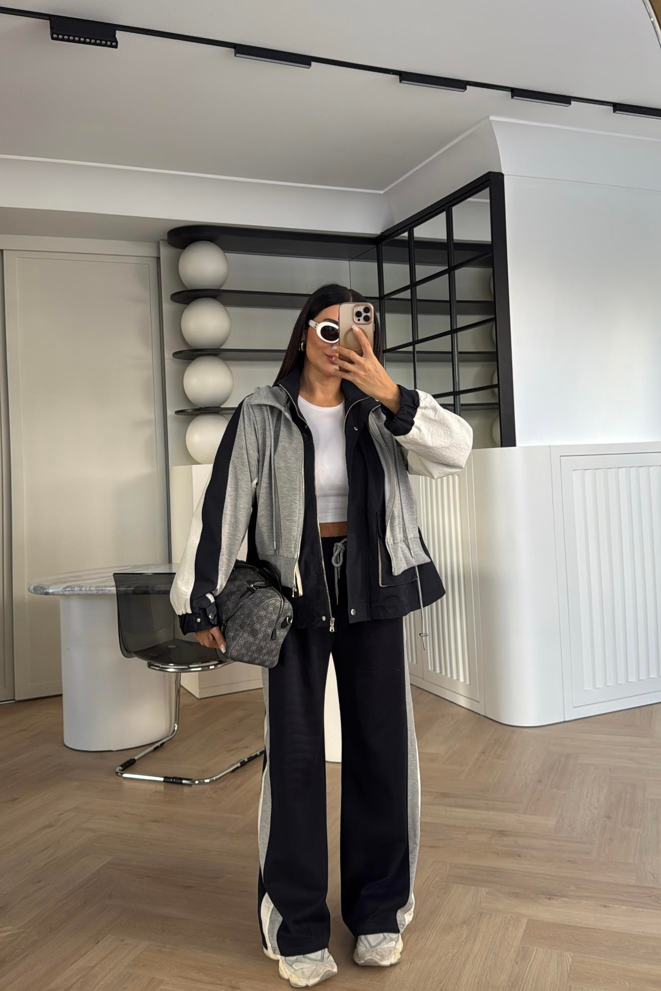 LACİVERT GRİ TASARIM KAPÜŞONLU EŞOFMAN TAKIM