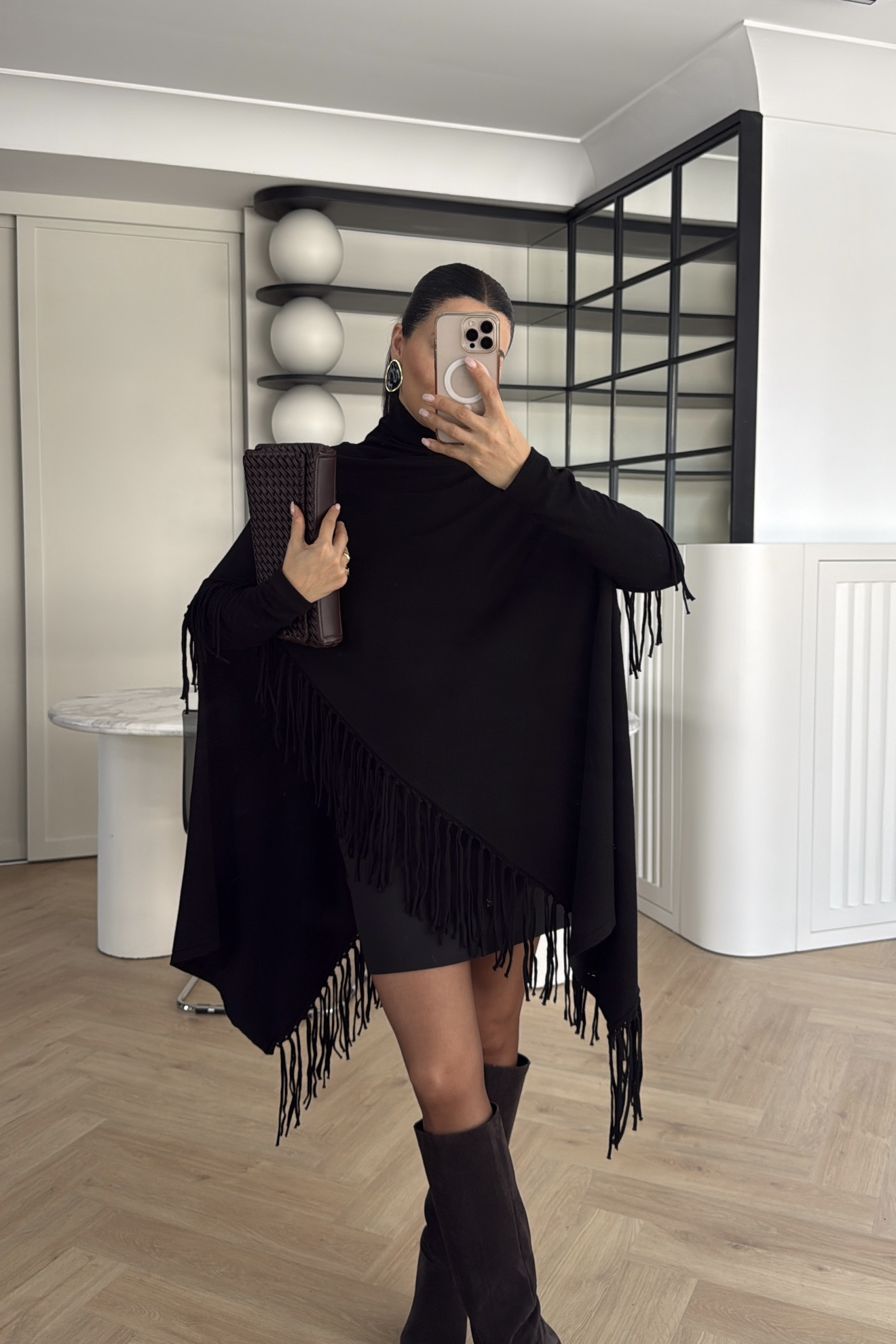 PÜSKÜLLÜ TRİKO PANÇO SİYAH