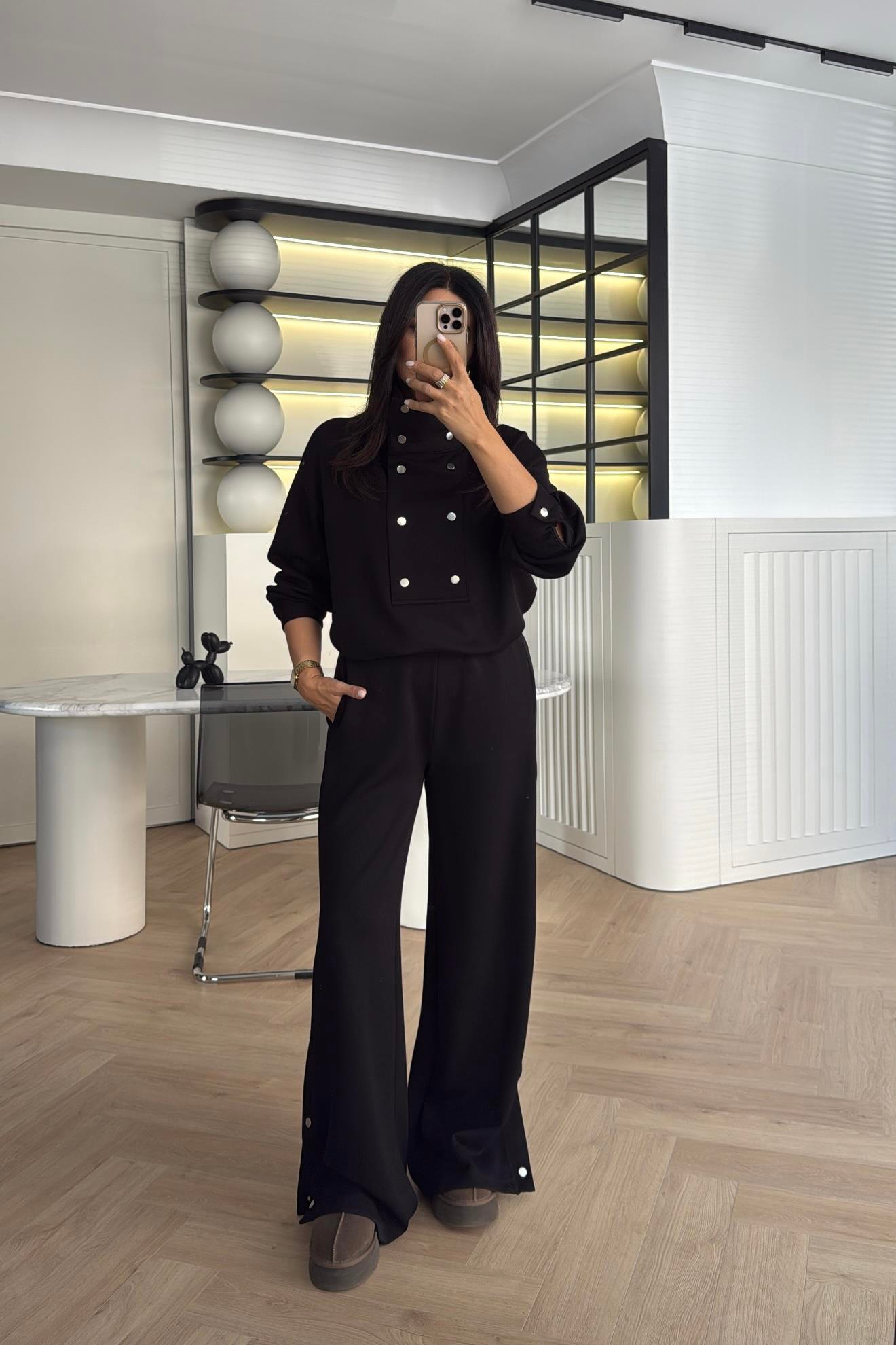 SİYAH ÇITÇITLI MODAL KUMAŞ SWEAT EŞOFMAN TAKIM