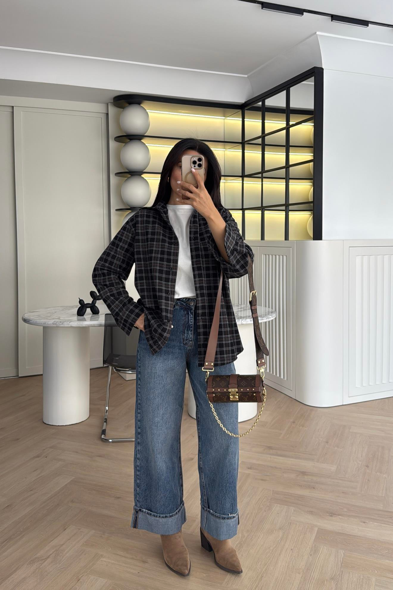 SİYAH EKOSE DÜĞMELİ GÖMLEK